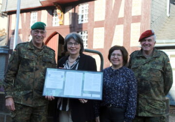 Frankenberg(pm). Die sicherheitspolitische Lage in Europa hat sich spätestens seit dem russischen Angriff auf die Ukraine erheblich geändert. Um dem Rechnung zu tragen, stellt das Landeskommando Hessen ein Heimatschutzregiment aus Reservisten auf. Die Stadt Frankenberg hat sich als Arbeitgeber jetzt dazu entschieden, das Projekt „Ungediente für die Reserve“ zu unterstützen. Interessierte Freiwillige sollen für Ausbildungszwecke ab sofort entsprechend vom Dienst freigestellt werden. Frankenbergs Bürgermeisterin Barbara Eckes und Personalchefin Sandra Frost haben die Partnerschaftserklärung vom Regionalbeauftragten des Landeskommandos für Nordhessen, Major Horst Knauff, sowie von Oberstleutnant Michael Dude entgegengenommen. „Wir als…