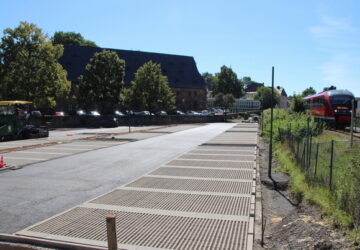 Frankenberg(pm). Während auf der einen Seite des ehemaligen Klosters St. Georgen in Frankenberg die Asphalt-, Erd- und Kieshaufen immer größer werden, tut sich auch hinter dem historischen Gebäude etwas: Die Asphaltarbeiten auf dem Parkplatz am Kloster haben diese Woche begonnen. Der Parkplatz nimmt damit zumindest optisch schon langsam Gestalt an. Bis zur Fertigstellung müssen sich Autofahrende noch etwas gedulden, aber voraussichtlich noch im Oktober wird der Parkplatz fertiggestellt und seiner Bestimmung übergeben. Die Parkplätze in diesem Bereich stehen dann in gleicher Anzahl wieder zur Verfügung und sind wie bisher kostenpflichtig.…