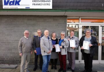 Frankenberg(pm). Mehrere Mitglieder im Vorstand des VdK Ortsverbandes Frankenberg wurden in einer kleinen Feierstunde mit der Ehrenplakette für ihre langjährige ehrenamtliche Arbeit ausgezeichnet. Reinhard Kahl, stellvertretender Vorsitzender des Kreisverbandes, nahm die Ehrungen im Namen des Landesverbandes vor. Er lobte die engagierte und fachkompetente Arbeit der VdKler. Die langjährige Vorsitzende des Ortsverbandes, Gerhild Buß wurde mit der Ehrenplakette in Gold ausgezeichnet. „Gerhild Buß hat seit Jahren die Arbeit des größten Ortsverbandes im Kreisverband nachhaltig geprägt“, betonte Kahl. Wilhelm Geitz hat sich besonders in der Mitgliederbetreuung engagiert. Er erhielt die Ehrenplakette in…