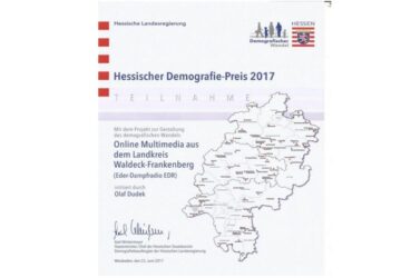 Motto “Wo Ideen Freiraum haben! Leben auf dem Land” Wiesbaden(pm). Zum 14. Mal zeichnet die Hessische Staatskanzlei in diesem Jahr mit dem Hessischen Demografiepreis Initiativen aus, die sich mit Phantasie und Mut den Herausforderungen unserer Zeit stellen. Bewerben können sich Projekte seit dem 8. Februar. Bewerbungsfrist ist der 21. März. Der Hessische Demografiepreis ist in diesem Jahr mit 24.000 Euro dotiert. “Fast 1.000 Projekte haben sich seit der Einführung 2010 schon beworben, darunter viele spannende Projekte aus dem Landkreis“, meint Jürgen Frömmrich, Parlamentarischer Geschäftsführer der hessischen Landtagsfraktion von Bündnis 90/Die Grünen…