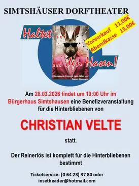 • 19:00, 28 März, 2026 – Simtshäuser Dorftheater - Benefizaufführung