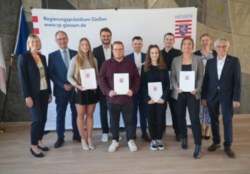 Gießen(pm). Dr. Christoph Ullrich (Regierungspräsident Gießen) und Susanne Reul (Hessisches Ministerium des Innern, für Sicherheit und Heimatschutz) ehren landesbeste Auszubildende in Verwaltungsberufen des Jahres 2024 „Der Abschluss Ihrer Ausbildung markiert sowohl ein Ende als auch einen Anfang. Es ist das Ende einer intensiven Zeit des Lernens, der beruflichen Orientierung und des Einstiegs in das Berufsleben. Gleichzeitig ist es der Beginn eines neuen Kapitels in Ihrem Leben. Mit den Leistungen, die Sie als Landesbeste erreicht haben, besitzen Sie das Rüstzeug, eine erfolgreiche Zukunft zu gestalten.“ Mit herzlichen Worten gratulierte der Gießener…