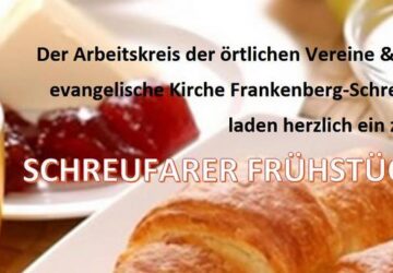 Schreufa(pm). Das Schreufarer Frühstück findet auch in diesem Jahr, traditionell am ersten Sonntag im September, am 3. September 2023 um 10:00 Uhr, statt. In diesem Jahr ist das Frühstück nicht erneut als „Picknick mit Gott“ geplant, sondern erstmals wieder nach der Corona Pandemie als Frühstücksbuffet. Das Frühstück findet am Haus des Gastes statt. Es startet um 10h mit einem Gottesdienst mit Pfarrer Holland-Letz, bevor im Anschluss das Buffet eröffnet wird. Ein Beitrag für das Buffet wird in der Höhe von 7.- Euro für Erwachsene und für Kinder von 6-14 Jahren…