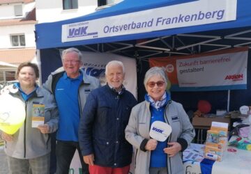 Frankenberg(pm). Mit einem Infostand haben sich der VdK Kreisverband und der Frankenberger Ortsverband am Maistadtfest beteiligt. Mit Infomaterial und mehreren Aktionen hat sich der Sozialverband dargestellt. Auch in vielen Gesprächen mit Bürgerinnen und Bürger wurde das Arbeitsspektrum des VdK vorgestellt. Im Mittelpunkt der Gespräche standen die Pflege und das sozialpolitische Forderungsprofil des VdK.